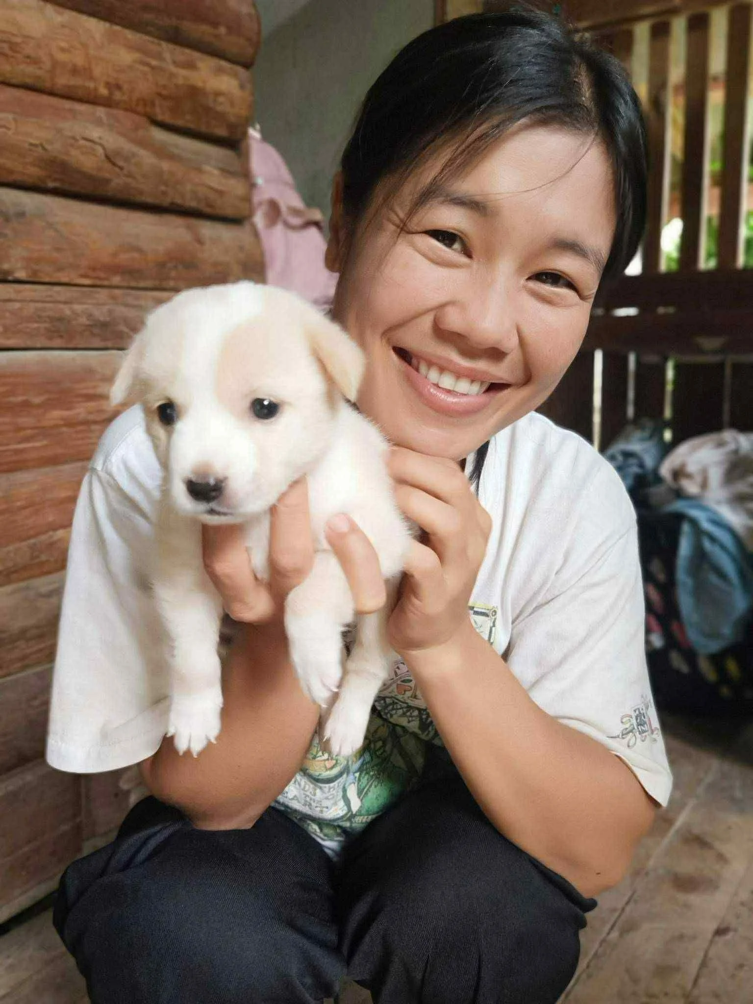 Susu is an Elephant Grass Cutter and helps to clean the night shelters and elephant food preparation area. She is Ai Wa’s wife, a mumma to 4 beautiful children and also helps take care of 4 of the Sanctuary dogs and 1 Cat who decided to take up residency right outside her home.
